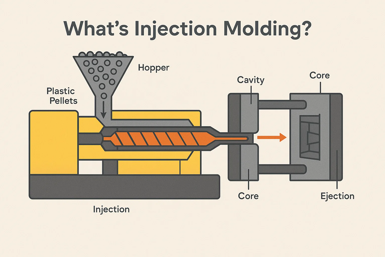 في جوهرها، صب الحقن هي طريقة متطورة لتصنيع الأجزاء البلاستيكية، بدءًا من حافظات الهواتف وأغطية الزجاجات وحتى لوحات عدادات السيارات والأجهزة الطبية. وهو يعمل عن طريق حقن مادة بلاستيكية منصهرة - عادة أ لدن بالحرارة - في تجويف القالب المصمم خصيصًا والمبرد. بمجرد أن يبرد البلاستيك ويتصلب، يفتح القالب، ويتم إخراج الجزء النهائي.