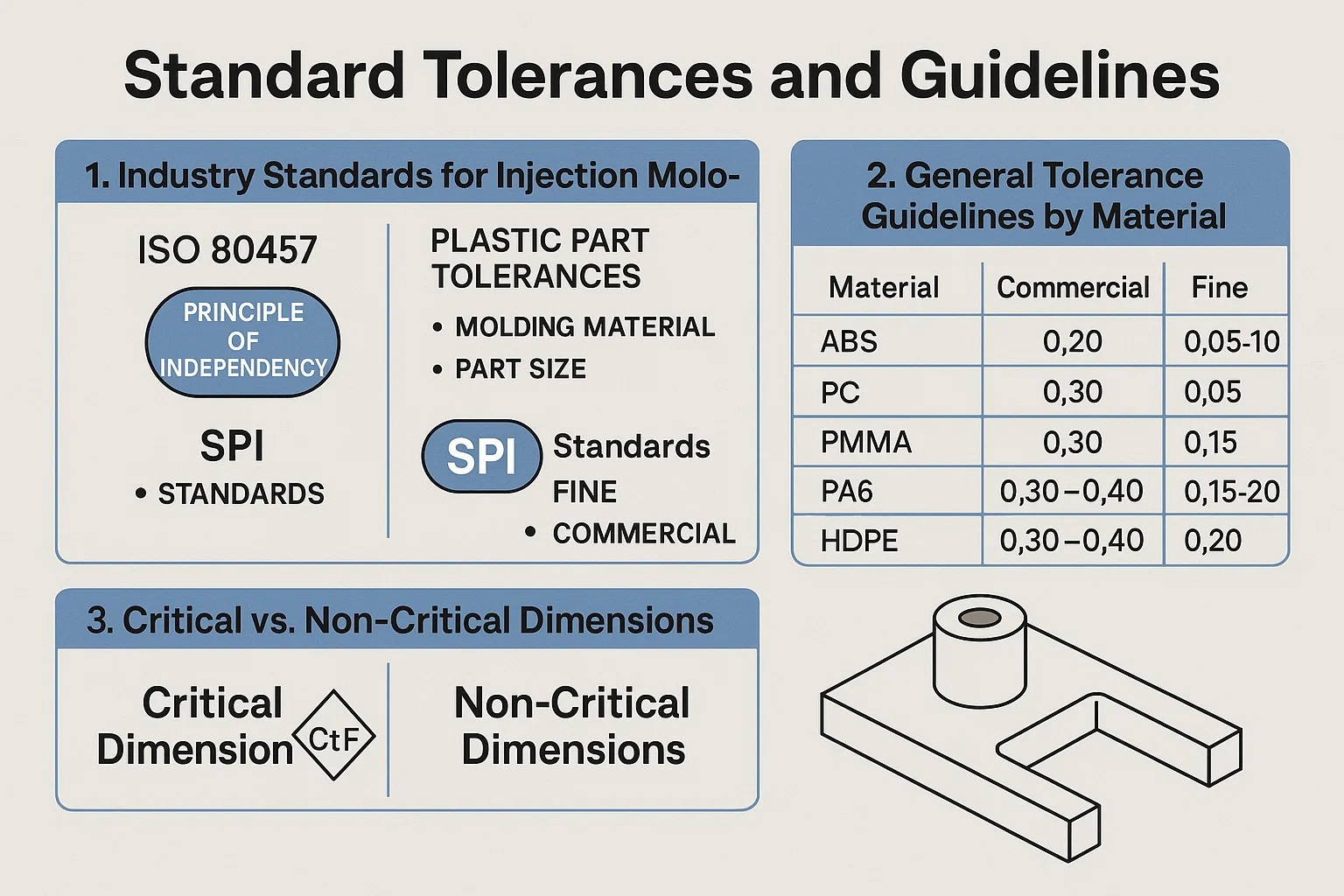 1. ما هو التسامح القياسي لقولبة الحقن؟